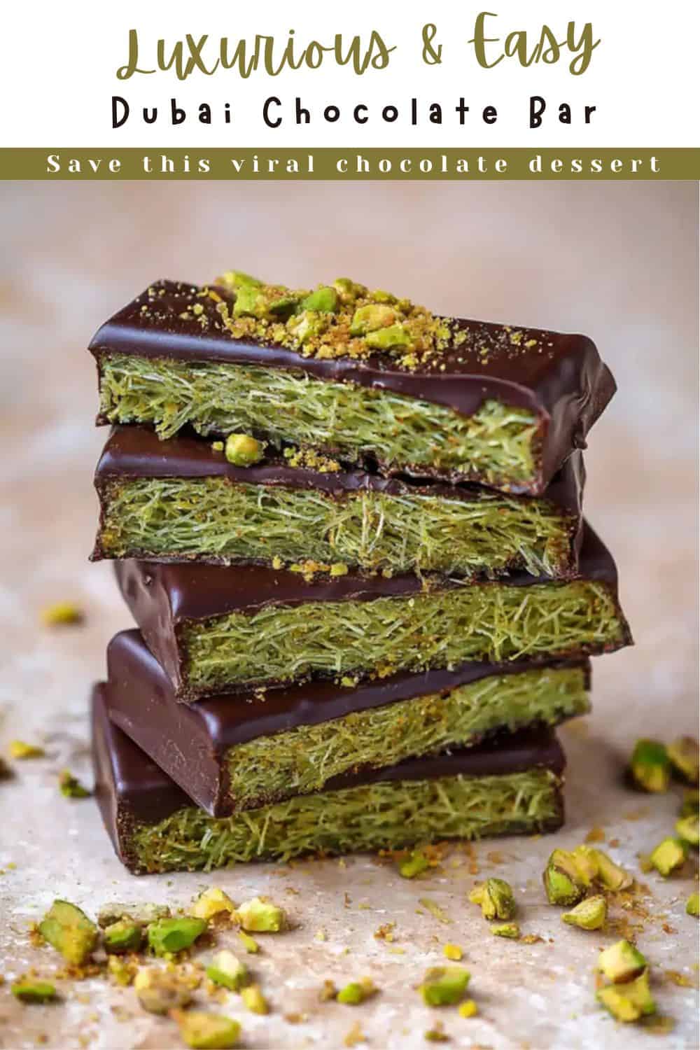 Making your own Dubai chocolate bar recipe at home is easier than you think, and the results are pure luxury. The creamy pistachio, nutty tahini, and crisp kataifi filling make these bars a true Middle Eastern-inspired treat. Wrap them up for gifts, serve them after dinner, or keep them all to yourself (I won't tell).